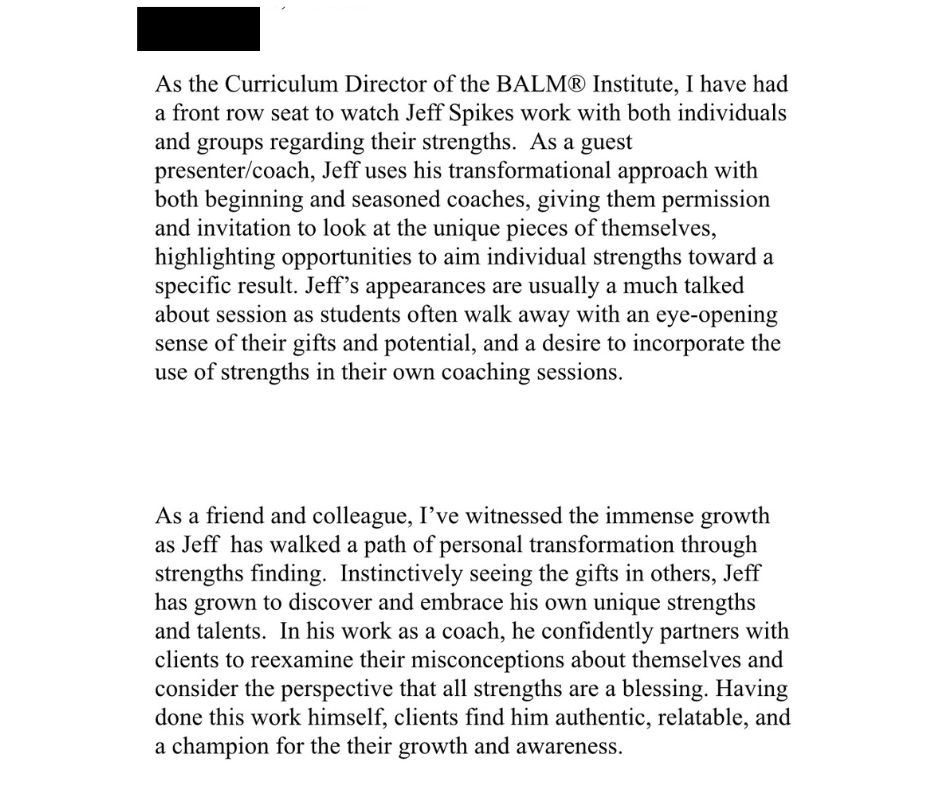 This process is all about the personal, independent way of learning what our strengths are. I learned that various strengths assessments were highly valuable especially when considering the science behind them (CliftonStrengths for example) the most scientifically studied strengths model. But the picture is incomplete without your own introspection and feedback from those that know and love us most. Personal stories and connections to the science come to life with the self discovery process and the key is pulling awareness from multiple data points to create as full a picture as possible.